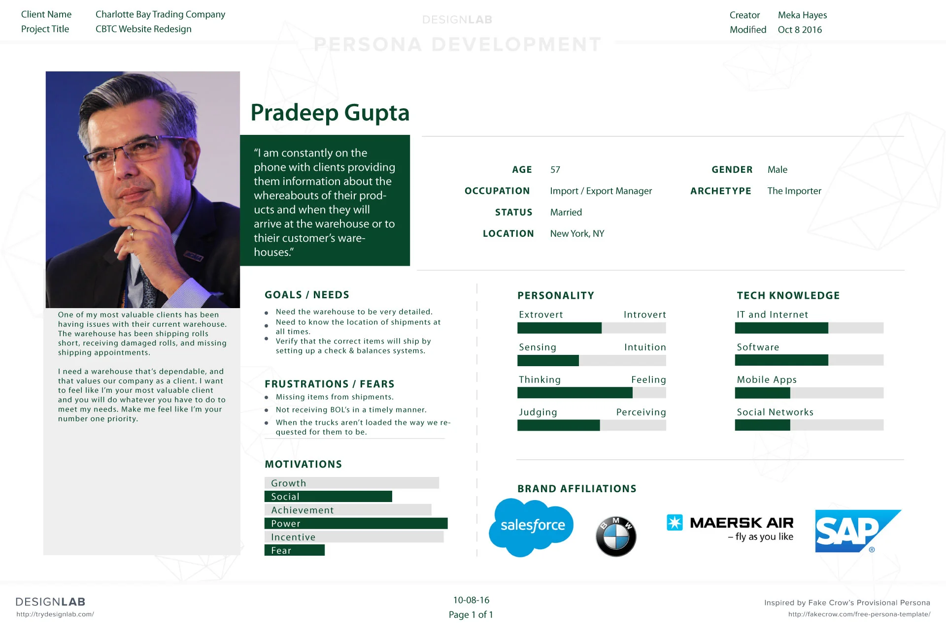 Pradeep and Eva are both a combination of the various former and current Charlotte Bay Trading Company customers. Pradeep in particular has a lot of characteristics of one of their customers that has specific requirements about his shipments (inbound and outbound) and requires a lot of special attention.